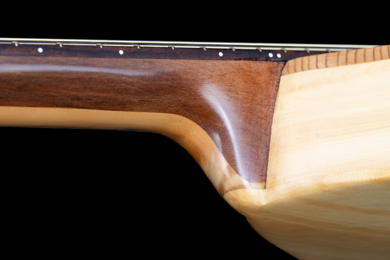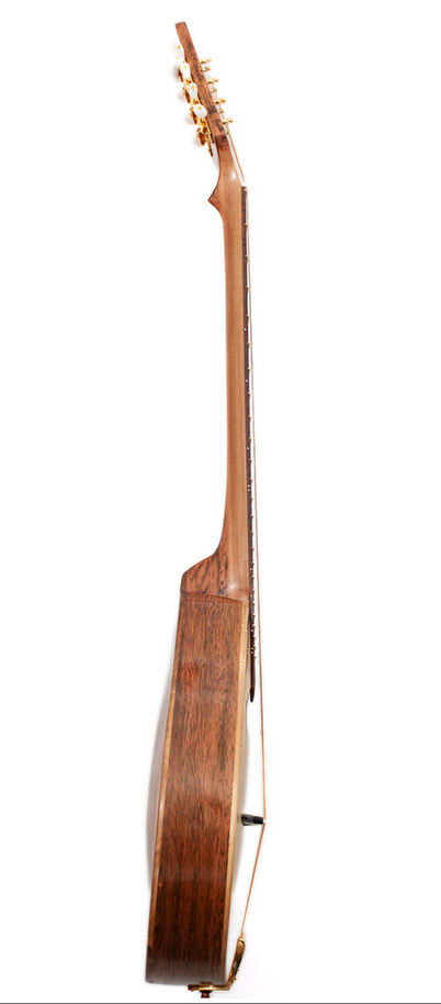 Ringed gidgee fretboard, snakewood bridge and head plate